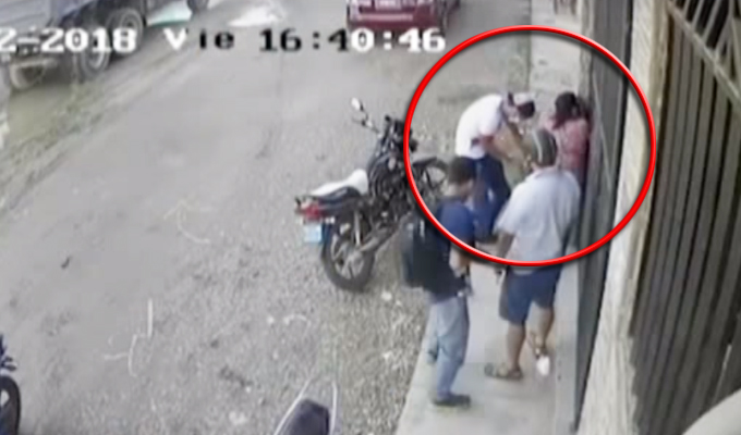 Como se observa en las imágenes los delincuentes esperaron el momento justo para entrar en acción para arrebatarle el dinero que acaban de retirar de una entidad bancaria una pareja de empresarios en Madre de Dios. Los hampones llegaron hasta la puerta de su casa luego que retiraron una fuerte suma de dinero, cuando de pronto fueron interceptados por los cuatro sujetos con armas de fuego que llegaron a bordo de dos motos. Los enfurecidos ladrones buscaron todo lo que tenían y al percatarse que un vecino pedía ayuda este hombre decidió dar un disparo al aire para que no interrumpan lo que ya habían comenzado.