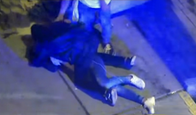 Cámaras de seguridad captaron el preciso momento en que un grupo de jóvenes intentan violarla.