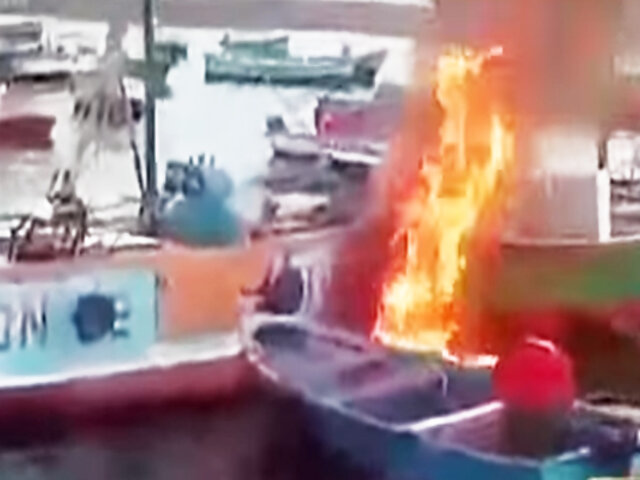 Una lancha pesquera se incendió en Marcona, Según primeros informes el dueño de la embarcación estaba reparando su motor y al terminar la labor, cuando uso gasolina para encenderlo este provocó una chispa y comenzó arder.