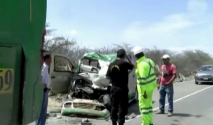 Graves accidentes de tránsito se registraron en tres importantes ciudades del país. En Cajamarca, un choque frontal entre un automóvil y una camioneta dejó deudos a los padres de una niña de 4 años. La colisión se registró en el kilómetro 59 de la carretera Jaén - San Ignacio. Otras víctimas fueron el chofer del auto y otro pasajero. El conductor del colectivo Melaneo Heredia Julca y la niña, fallecieron de manera instantánea y la tercera víctima murió camino al hospital. Testigos aseguraron que el responsable del accidente fue el chofer de la camioneta que invadió el carril contrario.