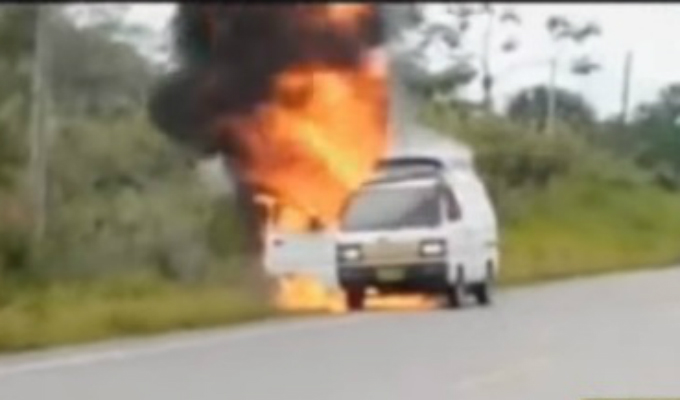 En San Martín, una combi se incendió en plena carretera Fernando Belaunde Terry, entre los distritos de Nueva Cajamarca y Rioja.