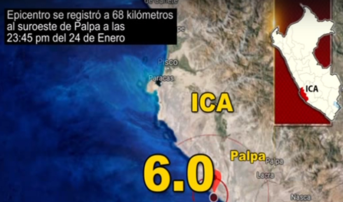 Un sismo de 6.0 grados de intensidad remeció la zona de Palpa, ubicada en la región Ica. El movimiento telúrico se registró a las 11: 45 de la noche.