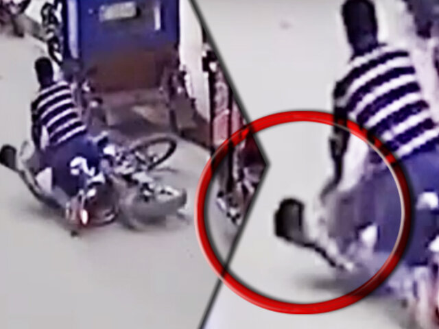 Al ver detenidamente las imágenes se puede observar como el conductor de la moto cayó de cabeza contra el pavimento.