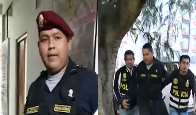 Johny Bernal Salas fue detenido mientras cumplía sus labores policiales, enmarrocado por sus propios colegas el agente es culpable de robar dos armas de la comisaría de Otuzco donde años anteriores prestó servicio.