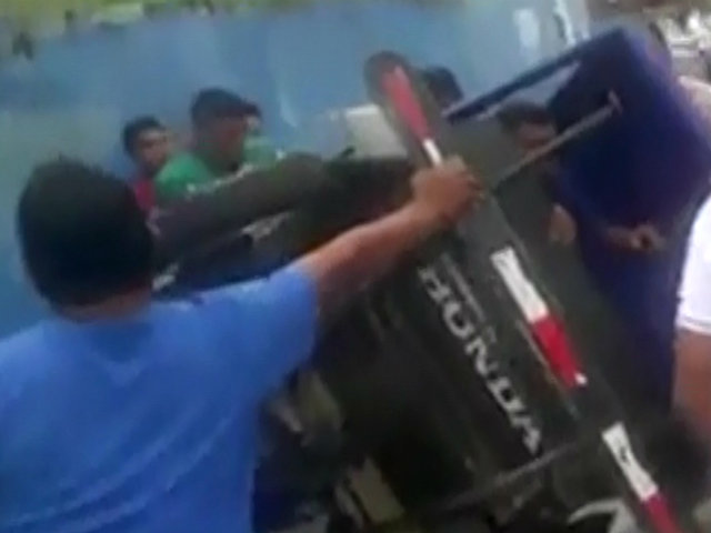 El sujeto fue llevado por la policía a una mototaxi pero los vecinos voltearon el vehículo y continuaron agrediendo al sujeto.