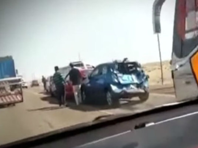 Siniestro en las carreteras. Un choque múltiple en la Panamericana Sur dejó como saldo cinco personas heridas en la región Tacna. El accidente habría sucedido cuando seis vehículos estaban estacionados en fila.