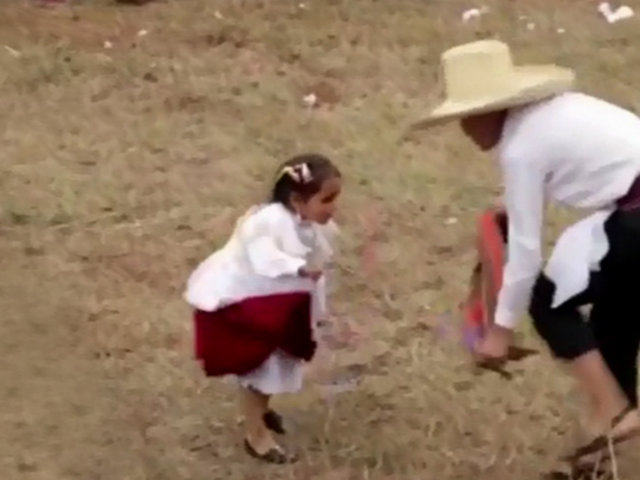 Como se observa en el video, la niña que viste una blusa blanca y una falda roja demuestra gran destreza y facilidad al bailar este tradicional baile, mientras es ovacionada por los espectadores de la feria.