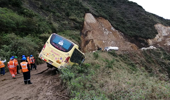 Bus interprovincial con más de 30 pasajeros a bordo estuvo a punto de caer a un acantilado. Afortunadamente no se han reportado heridos.