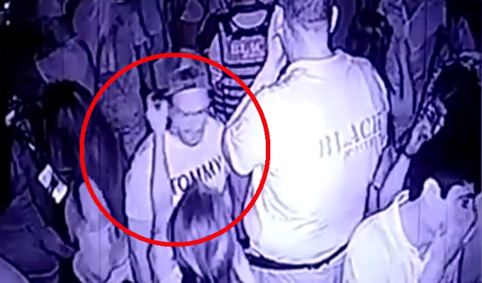 Como se observan en imágenes, el hombre se encontraba caminando en la pista de baile en dirección a la joven. De pronto y sin motivo alguno, ella le incrusta el vidrio del vaso en la mejilla derecha.