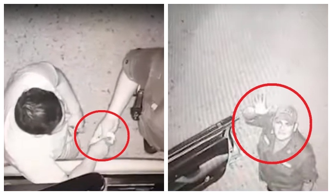 Como se observan en las imágenes, el conductor del vehículo saca de su canguro lo que sería un billete y se lo entrega al policía. El efectivo lo recibe y lo coloca debajo de su celular para luego entregarle sus documentos.