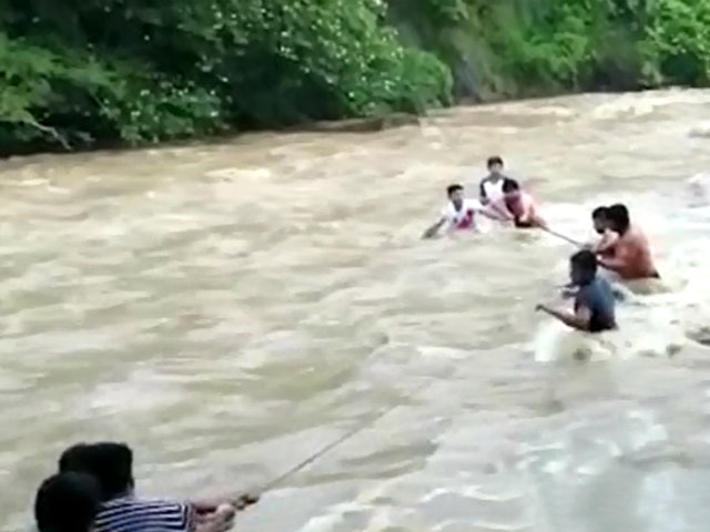 Un video grabado por uno de los residentes, muestran el preciso momento en que ayudan a los jóvenes proporcionándoles una soga, con el fin de ser llevados hasta la orilla del río y ponerlos a salvo.