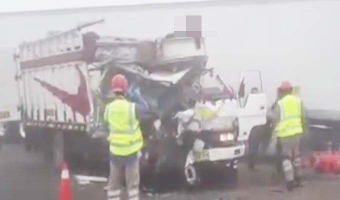 En Huacho, un accidente se produjo durante la madrugada a la altura del kilómetro 110 de la carretera Panamericana Norte en el sector conocido como “Bajada de doña María”. El choque frontal entre este camión y un tráiler cobró la vida de dos personas y dejo otras tres heridas. Según testigos la falta de visibilidad debido a la densa neblina en la zona, habría provocado este aparatoso choque. Lamentablemente el copiloto y un ayudante del camión, que trasladaba cerdos de Huacho a Lima, perdieron la vida.