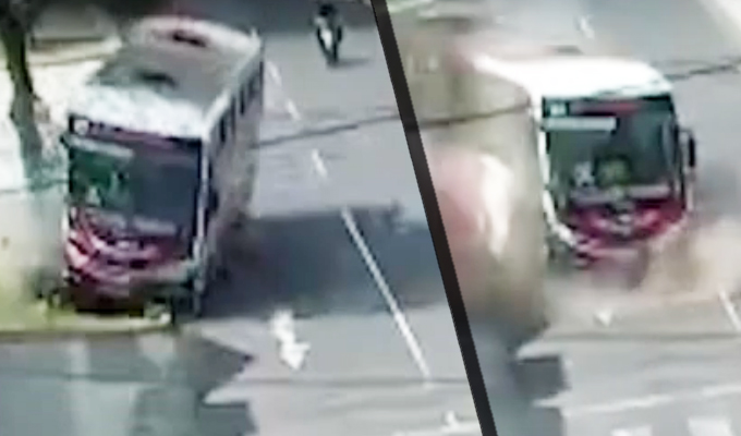 En Trujillo, una cámara de seguridad registró el momento de descuido de un chofer y los segundos de terror que vivieron los pasajeros que iban a bordo de una unidad de transporte público, luego que el bus donde viajaban se estrellara contra un poste de alumbrado.