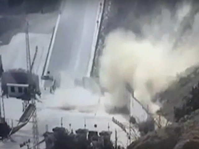 Las impresionantes imágenes muestran enormes piedras y arena cayendo sobre los muros del terminal.