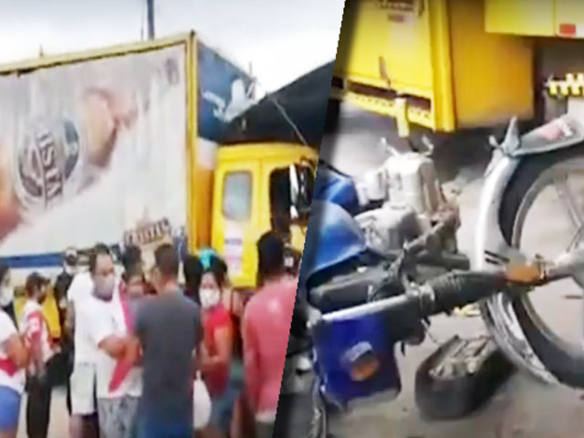 En la ciudad de Iquitos, un camión distribuidor impactó contra una vivienda. Testigos indicaron que quien manejaba la pesada unidad era el ayudante del chofer, quien encendió el motor y perdió el control del camión chocando primero contra dos mototaxis para finalmente empotrarse en este predio ubicado en la cuadra 8 de la calle Cabo Pantoja.