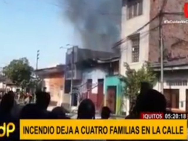Un voraz incendio consumió cuatro viviendas en pleno centro de Iquitos, en Loreto. Un cortocircuito en una de las casas sería la causa del siniestro, que no dejó víctimas mortales. Sin embargo, las cuatro familias lo perdieron todo.