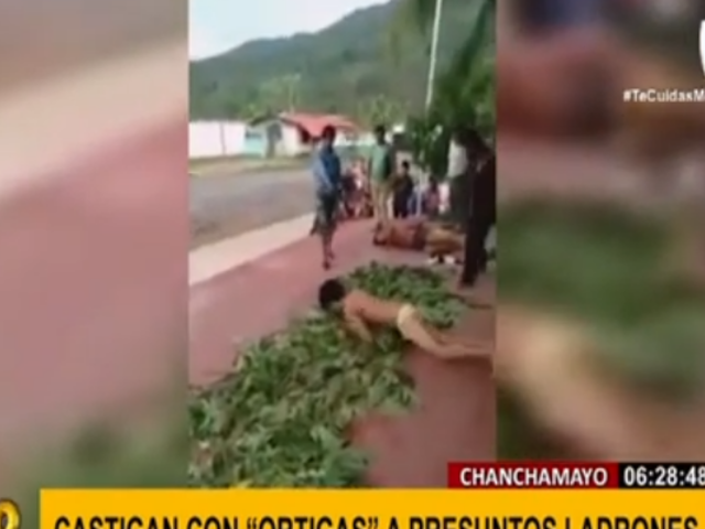 Dos jóvenes acusados de haber robado una bicicleta y consumir drogas en la calle recibieron un terrible castigo por parte de vecinos en Chanchamayo, Ambos fueron desnudados y los hicieron rodar sobre una cama de ortigas antes de ser entregados a la policía. Ellos advirtieron que continuarán vigilantes.