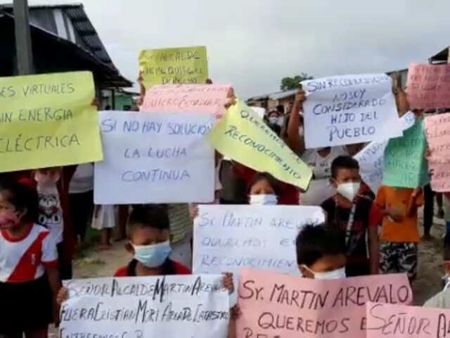 Se trata de los escolares del asentamiento humano 22 de Mayo, quienes con carteles en mano realizaron una protesta para hacer un llamado de atención al alcalde del distrito de San Juan Bautista en Loreto.