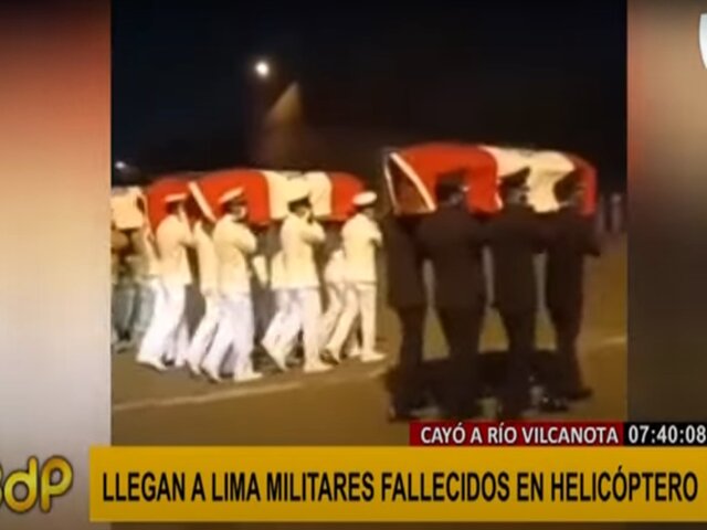 Llegaron a Lima los cuerpos de John Salazar Periche, Carlos Solano Caballero, Victor Arturo Carpopata Macedo, Rodrich Javier Paredes Sonco, Santiago Junior Guaita Estrada y— según última actualización del Ministerio de Defensa—, Marco Antonio Guerra Saavedra. Los 6 militares que fallecieron luego de que el helicóptero donde cumplían sus misiones cayera al río Vilcanota.