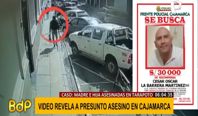 La jefatura del Frente Policial de Cajamarca reveló imágenes de cámaras de seguridad donde se observaría al presunto asesino de Jenni Rojas Aranda y su menor hija de 12 años en la ciudad de Tarapoto.