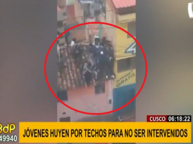 Un grupo de jóvenes fueron captados cuando intentaban escapar por los techos de un local para no ser intervenidos por participar de una fiesta covid, por agentes de la Policía Nacional del Perú (PNP), en Cusco.
