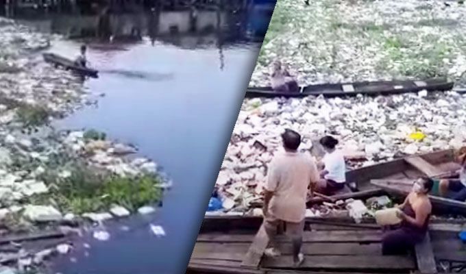 Frente a este problema, decenas de vecinos se juntaron para realizar una protesta a bordo de canoas sobre las aguas contaminadas, para exigir la limpieza de las aguas.