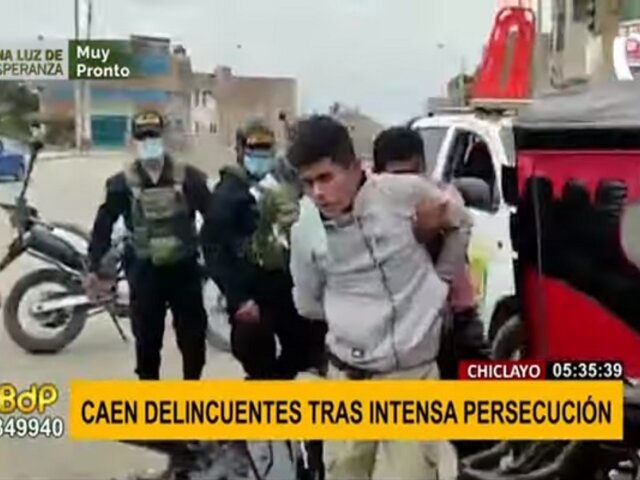 Agentes de la Policía Nacional del Perú (PNP) capturaron a dos ladrones que huían a bordo de una mototaxi tras una intensa persecución por varias cuadras del distrito de José Leonardo Ortiz, en Chiclayo.