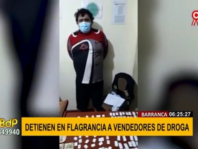 Agentes del Escuadrón Verde de la Policía Nacional del Perú (PNP) detuvieron en flagrancia a dos sujetos que se encontraban microcomercializando pasta básica de bocaína (PBC), en Barranca.