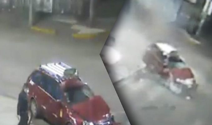 En Tacna, una cámara de video vigilancia de la municipalidad provincial registro el momento cuando dos autos colisionan en el cruce de las avenidas Pinto y Leguía. Producto de la excesiva velocidad el conductor de uno de los autos pudo frenar a tiempo, impactado lateralmente contra el otro que terminó sobre la acera.