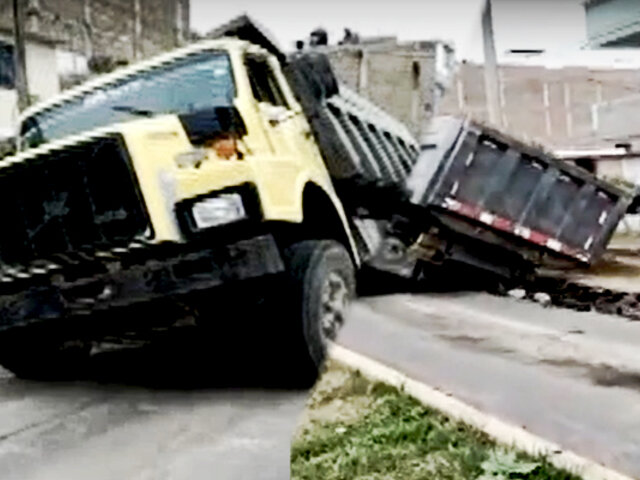 Gran molestia causó entre los ciudadanos que un pesado volquete se hundiera en una vía de Trujillo. Según los vecinos, las pistas en Trujillo se caracterizan por su mal estado.