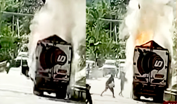 En el puente que une las localidades de Capachari y Pichanaki, en Chanchamayo, un camión repentinamente comenzó a arder en llamas.