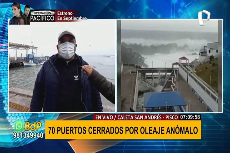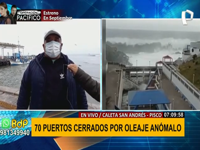 La playa Caleta San Andrés en Pisco permanece cerrada a causa de la presencia de oleajes anómalos. La playa ha alertado a la población mediante el uso de la bandera roja, en señal del peligro de los vientos y olas fuertes.