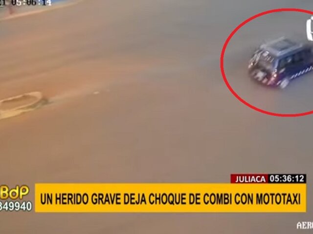 Juliaca: conductor de mototaxi grave tras violento choque contra combi