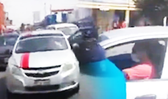 En su escape, retrocedió sin importarle si chocaba con los autos que se encontraban detrás del suyo.
