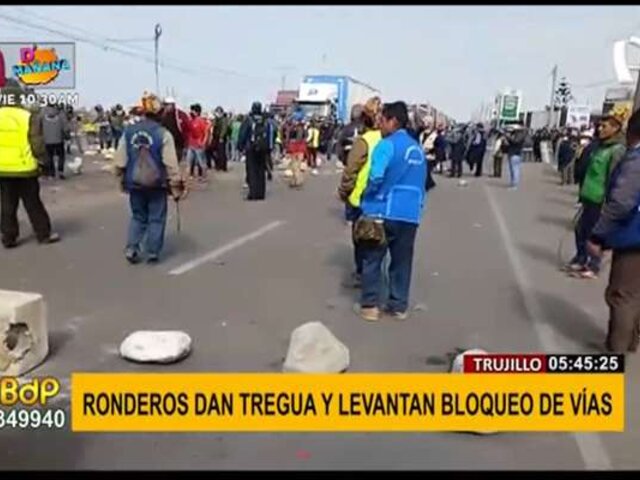 Decenas de vehículos de transporte público y privado quedaron varados durante horas en la Panamericana Norte, en Trujillo, tras el bloqueo hace dos días por parte de cientos de ronderos que buscaban entablar una mesa de diálogo con el Ejecutivo.