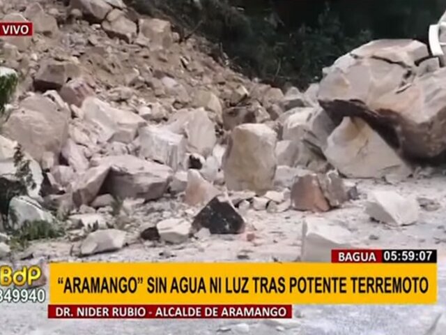 Asimismo, indicó que el distrito de Aramango se encuentra sin agua y sin luz debido al fuerte sismo. Mientras que Algunas carreteras se encuentran bloqueadas debido a los deslizamientos que se produjeron.