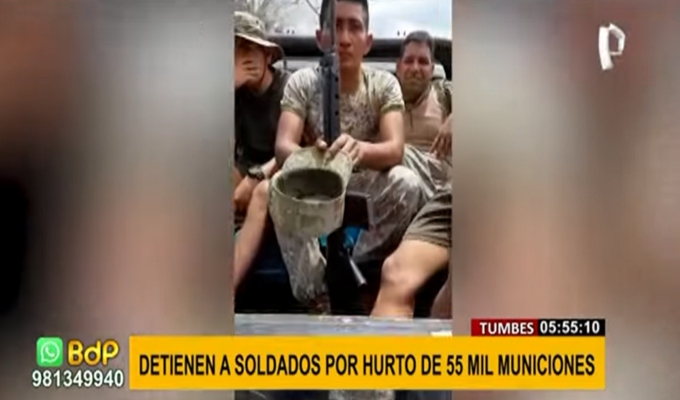 Salen a la luz más casos sobre los malos elementos que integran nuestras Fuerzas Armadas. Esta vez, seis miembros del la 9na Brigada blindada del Ejército del Perú, en Tumbes, fueron detenidos de manera preliminar por el hurto sistemático de mas de 55 mil municiones que, al parecer, eran vendidas en el mercado negro.