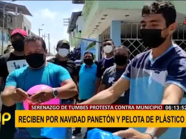 Tumbes: protestan contra municipalidad por entrega de pelotas en lugar de canastas navideñas