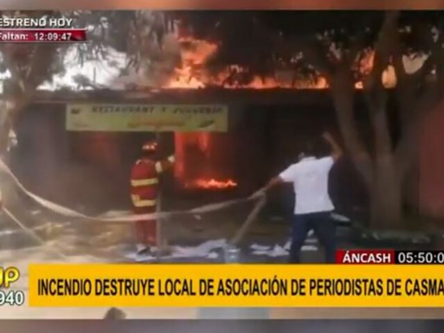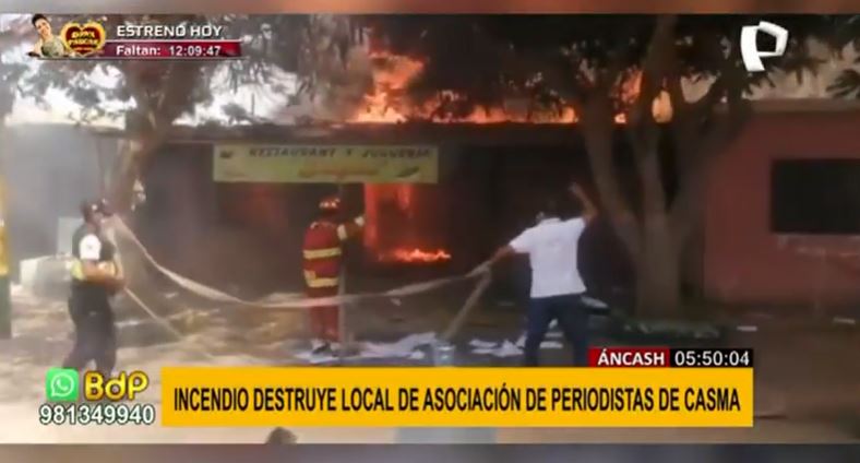 Un inmueble donde funcionaba la Asociación Nacional de Periodistas de Casma ubicada en la región Ancash fue destruido producto de un incendio.