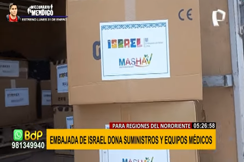 La Embajada de Israel realizó una donación de suministros médicos, de aproximadamente 750 kilos de peso, a favor de las Direcciones Regionales de Salud de las regiones de La Libertad, San Martín, Lambayeque, Cajamarca, Tumbes, Amazonas, Loreto y Piura, en el Perú.