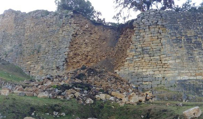 Esta tarde una parte del muro del complejo arqueológico de Kuélap se derrumbó, a causa de las lluvias intensas que caen en el distrito de Tingo, provincia de Luya, región Amazonas, según indicaron vecinos de la fortaleza.