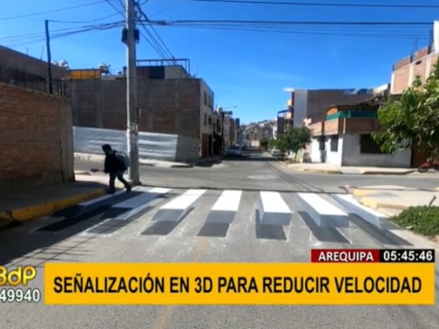 Una nueva señalización ha causado asombro en Arequipa. Las autoridades del distrito de José Luis Bustamante y Rivero pintaron un cruce peatonal en 3D como parte de un plan piloto para controlar la velocidad en los conductores que transiten por las avenidas principales.