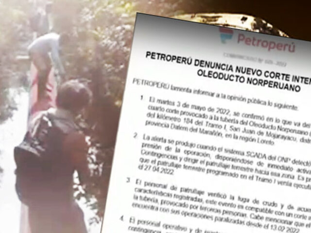 La empresa Petroperú denunció que el martes 3 de mayo, ocurrió un nuevo corte en el Oleoducto Norperuano, a la altura del kilómetro 184 Tramo I en San Juan de Mojarayacu, distrito de Barranca, provincia Datem del Marañón, en la región Loreto.