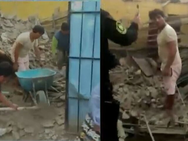Una adulta mayor también fue rescatada de los escombros. El hecho se suscitó en la Manzana D lote 3 del parque Angélica Morales en la avenida Venezuela. Vecinos también se preguntaron por la alerta del Ministerio de Transportes y Comunicaciones.