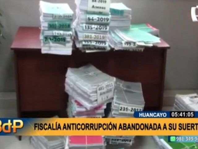 En el suelo, sobre las sillas o apilados en las esquinas. Así se encuentran los expedientes y carpetas fiscales. El fiscal superior anticorrupción de Junín, Ramón Vallejo Odría, señaló que llevan 11 años laborando en este edificio, en el distrito de El Tambo (Huancayo), donde se llevan casos como el de los Tiranos del Centro, El Aeródromo Wanka, entre otros.