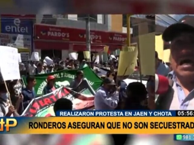 Una decena de ronderos salieron a manifestarse por las principales calles de Jaén en respaldo a los ronderos acusados de secuestro contra un equipo periodístico en el distrito de Chadín en Cajamarca.