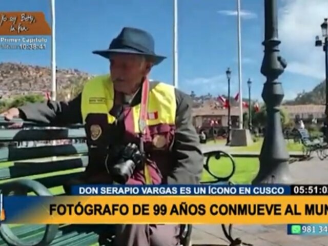 La edad nunca será impedimento para hacer lo que más nos apasiona. Eso lo ha entendido bien Serapio Vargas, un fotógrafo de 99 años que sigue recorriendo la Plaza de Armas de Cusco para capturar momentos a varios turistas que llegan a visitar la ciudad imperial.