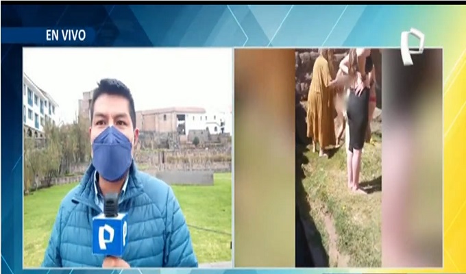 Sin ningún reparo y como si se tratará del baño de su casa, 12 turistas extranjeras se bañaron en uno de los canales del parque arqueológicode Tipón, en el distrito de Oropesa, Cusco.