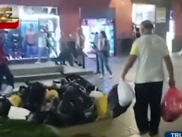 Totalmente invadidas de basura se ven las principales calles de la ciudad de Trujillo tras una nueva huelga del personal del Servicio de Gestión Ambiental.