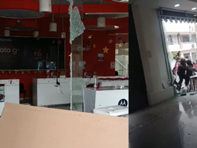Uno de los establecimientos atacados fue una empresa de telefonía, que terminó con los vidrios de su fachada destruidos. Luego, los vándalos ingresaron al comercio para robar al menos 30 equipos celulares de última generación.